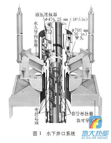 臨時導向基座用于定井位,是首先下入的設備,坐在海底泥線上;永久導向基座安裝在臨時導向基座之上,通過連接在導向柱上的導向繩引導后續(xù)工具的入井及設備的安裝;?762mm(30in)導管頭懸掛導管坐落在永久導向基座內(nèi),用專用下入工具隨永久導向基座同時下入;?476.25mm(183 /4in)高壓井口頭下部連接表層套管,坐落在導管頭內(nèi),通過液壓連接器連接水下防噴器;各層技術套管通過套管掛和密封總成懸掛在高壓井口頭內(nèi)。