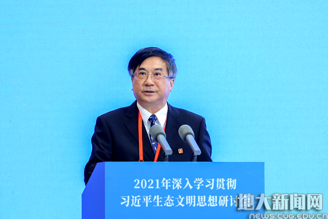 地大新聞網(wǎng)訊(通訊員張華)12月28日,2021年深入學(xué)習(xí)貫徹習(xí)近平生態(tài)文明思想研討會在成都舉行。生態(tài)環(huán)境部黨組書記孫金龍,四川省委書記、省人大常委會主任彭清華出席主論壇并作主題報告。校長王焰新院士作主旨演講,校黨委副書記王林清、環(huán)境學(xué)院黨委書記李素礦、公共管理學(xué)院院長胡守庚、馬克思主義學(xué)院副院長陳軍、科學(xué)技術(shù)發(fā)展院副院長郭海湘參會并分別參加“宣傳推廣”“實(shí)踐創(chuàng)新”“理論創(chuàng)新”“制度創(chuàng)新”4個平行分論壇。